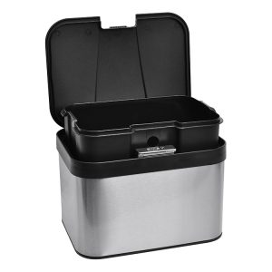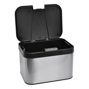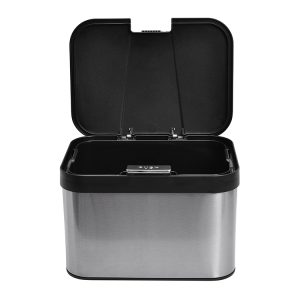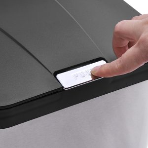 Nắp thùng rác inox đóng, mở rất êm, xuống chậm từ từ, không có tiếng ồn, nhấn nhẹ nhàng, êm ái và rất chắc chắn, bền bỉ. Nắp thùng rác tự động mở ra khi nhấn nút. Có thùng đựng rác bằng nhựa ở bên trong