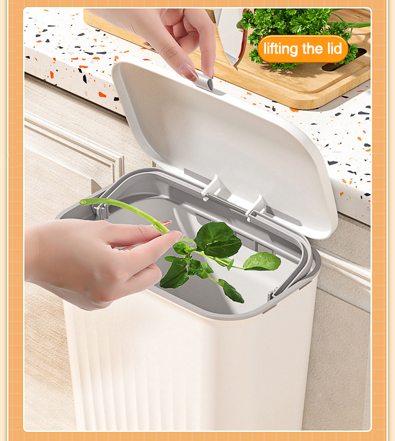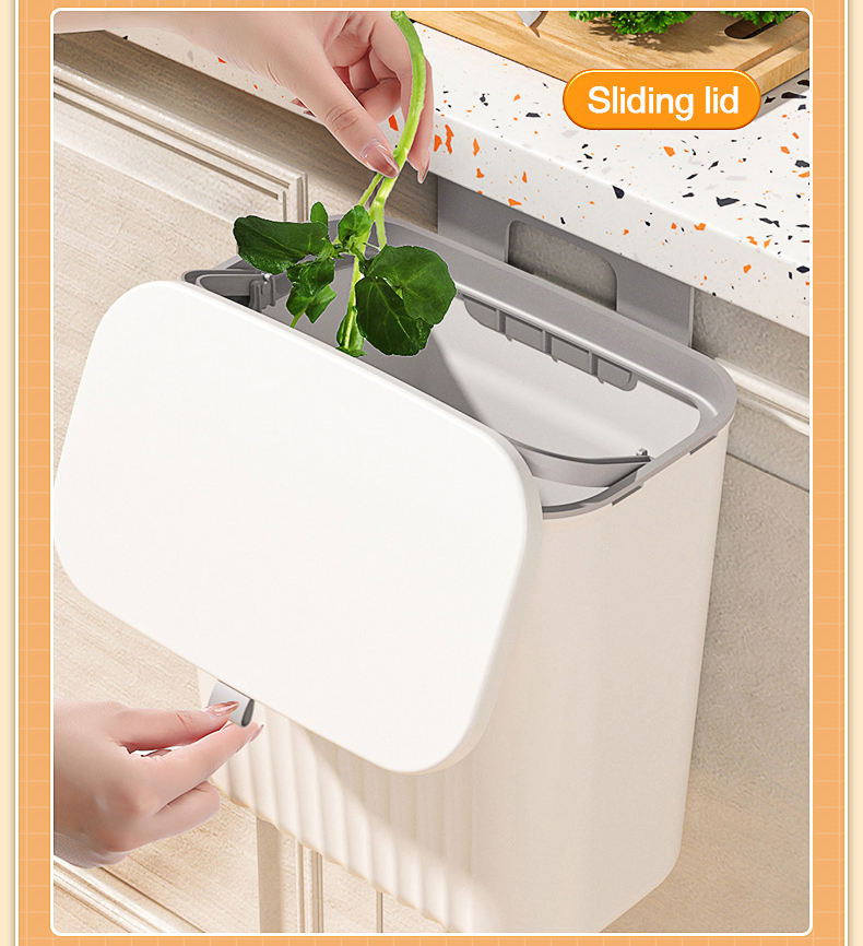 Thùng đựng rác treo cánh cửa tủ bếp có nắp đậy trượt thông minh